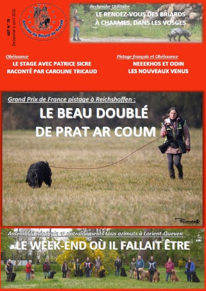 (posté par Catherine le 14/01/2025 à 19h 13 Prat Ar Coum de Ki Denved et Pascale Guihaire ont réussi à se sélectionner pour le Grand Prix SCC de pistage en échelon 2 qui se déroulera les 15 et 16 février à Reichshoffen, dans le Bas-Rhin, club présidé par Armand Barbier, ancien conducteur et éleveur de Briard. Prat et Pascale sont sélectionnées 9° sur les 20 chiens qui devraient en principe être retenu avec une moyenne de 92,78/100 sur les cinq concours doublés EXC demandés. Bravo à l'équipe et beaucoup de plaisir à Pascale à participer à ce Grand Prix |
