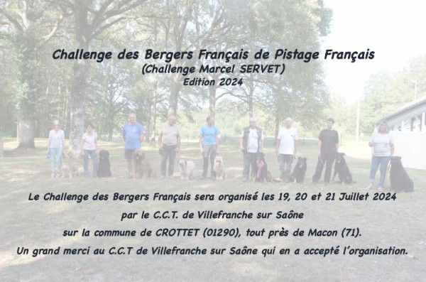 (posté par Admin le 12/08/2025 à 07h 42 Amis Pisteurs, Amies Pisteuses le Challenge des Bergers Français Pistage "Marcel Servet " 2025 a été repris par le club de Lorient Queven et notre amie Chantal Le Clainche. Pour votre parfaite information nous vous transmettons l'invitation et la feuille d'engagement. En espérant vous compter nombreux pour ce rendez-vous annuel et tant attendu. A télécharger dans la colonne Prochains Evenements |